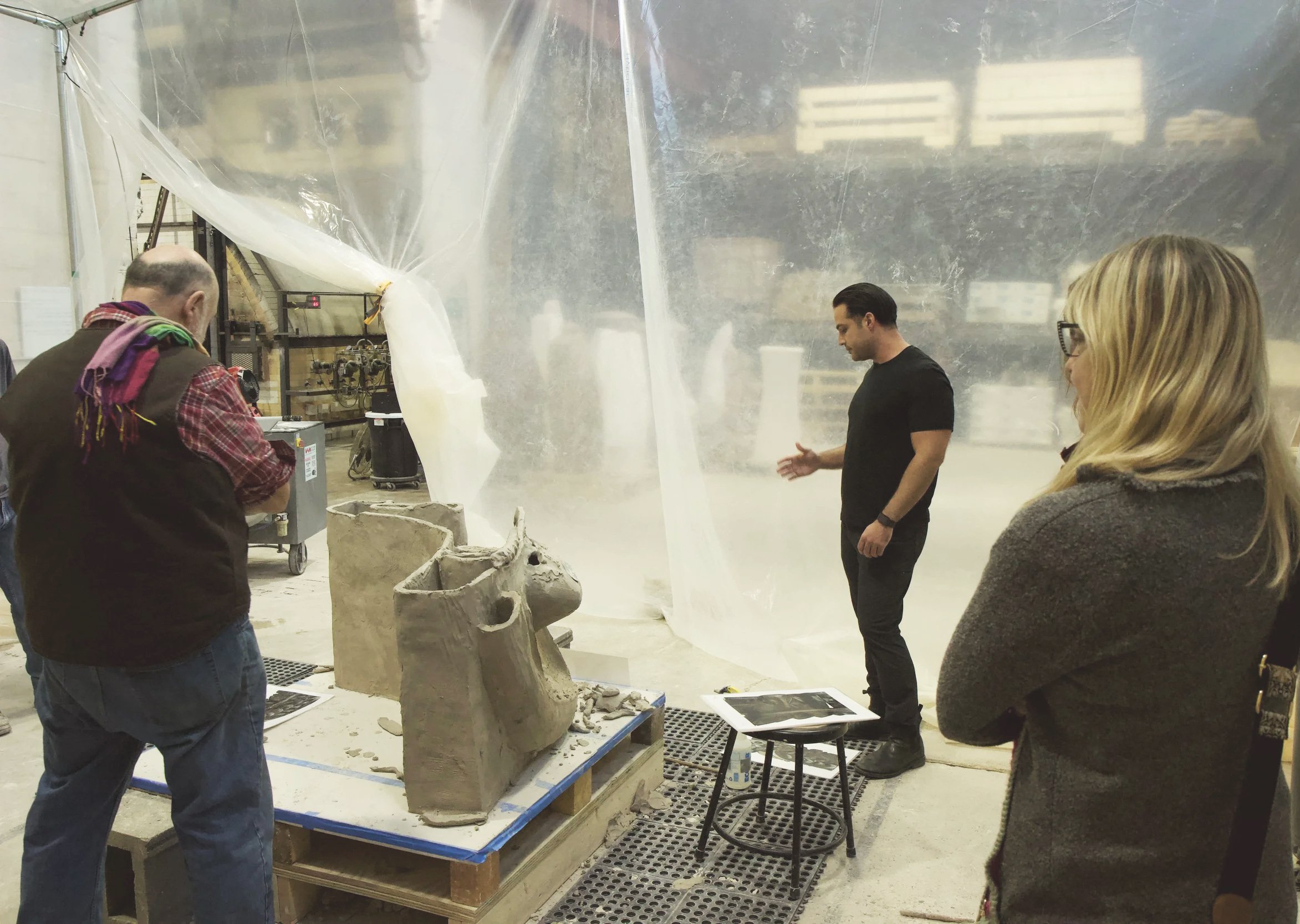 Demetriou makes monumental ceramic sculpture—work that asks for weight, time, and risk. It begins in drawing and proportion, in the quiet decisions of what must stand and what must yield. The forms are engineered to carry their own mass, shaped by many hands but held to a single vision.